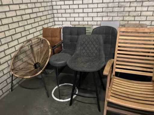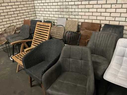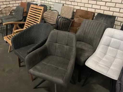 Verschiedene Esszimmerstühle und Gartenstühle.