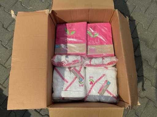 Süßer Lebensstil! Baby-Bademantel weiß 0-1 Jahr – Mädchen (16x) – Süß! Mädchen – Bettbezug – 80x80 cm + 1 Kissenbezug 40x40 cm – Pink (6x)