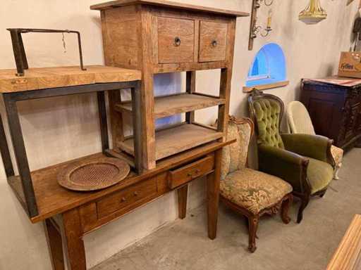 Dies sind Tische, Stühle, Beistelltische, Sessel, Kommode, Schminktisch, Schreibtische, Schränke, Standuhr, Dekoration.