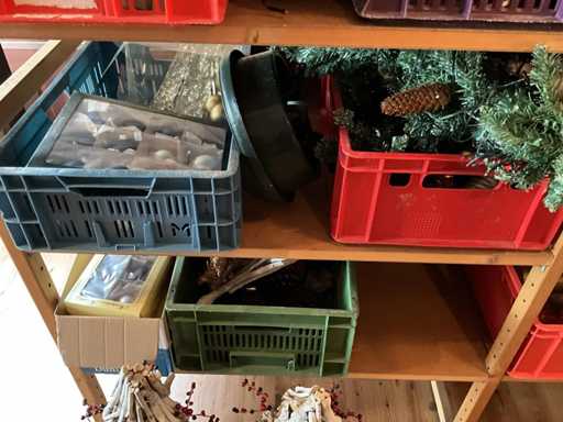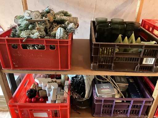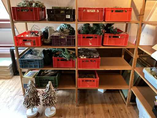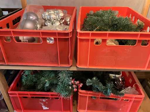 Bei der Charge handelt es sich um 2 künstliche Bäume und 10 Kisten mit Weihnachtsschmuck. Inkl. Kisten.