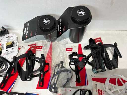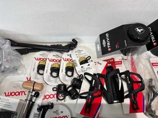 Bestehend aus Beleuchtung, Becherhaltern, Telefonhülle, Fahrradklingel, Stativ, Fahrradpumpe.