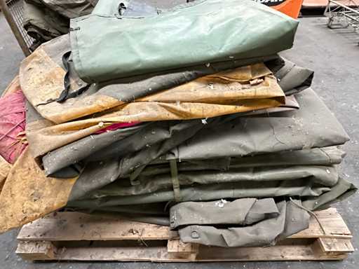 Dieses Los besteht aus verschiedenen Zelttüchern und Zeltplanen, deren Abmessungen und Status unbekannt sind.