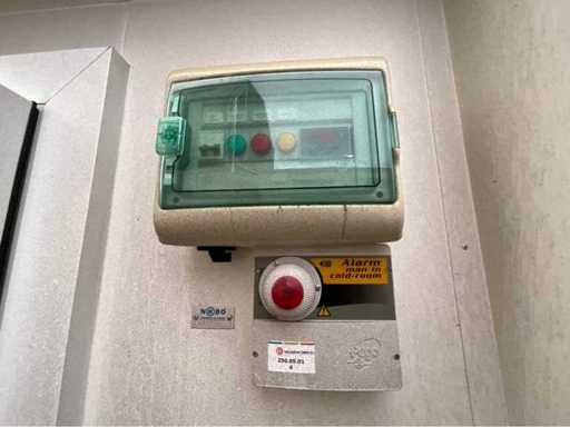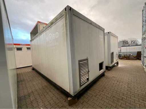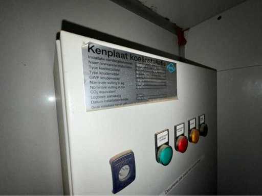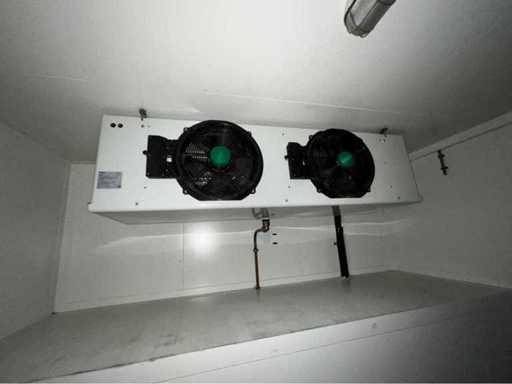 Stahlrahmen; Kühlraumwandstärke 120 mm; nutzbare Innenraummaße 4450x2750x2250 mm; doppelte Außentür zum kühlen Raum; Bedienpult; Verdampfer und Kühlkompressor; 400 Volt – 32 Ampere; Edelstahl-Lüftungsgitter; Drehschlösser; Betriebszustand; Der Käufer muss sich selbst um seinen Transport kümmern und den Lkw mit Ladekran öffnen;
