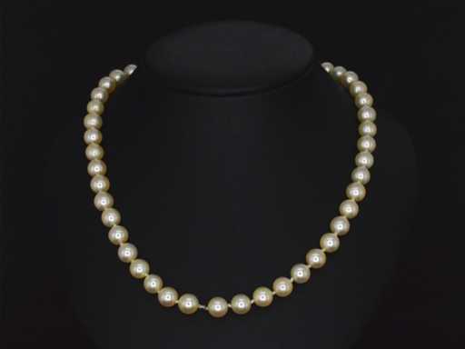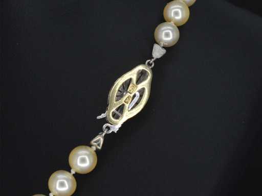Perle: Echte Perlen; Farbe: Weiß – creme; Größe: 3,5 - 7 mm; Luster: Sehr schön; Bewertung: AAA; Juwel: Collier; Gewicht: 25,8 Gramm; Abmessungen/Länge: 45 cm; Material: 14 Karat Gold (585); Zustand: Wie neu; Verpackung: Luxus-Schmuckschatulle; Erklärung: Die Qualität wurde aus dem Bericht übernommen, der zum Artikel gehört. Die Bewertung ist eine Bewertung eines zertifizierten Diamanthändlers, basierend auf Verbraucherpreisen; Verbraucherpreis: 6.000 €