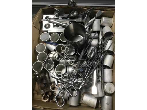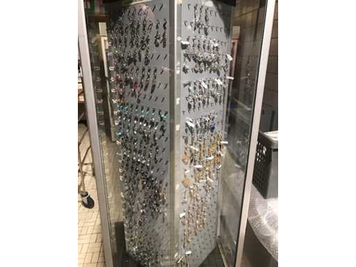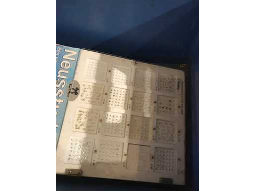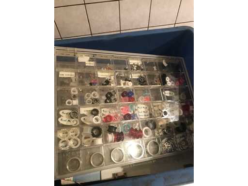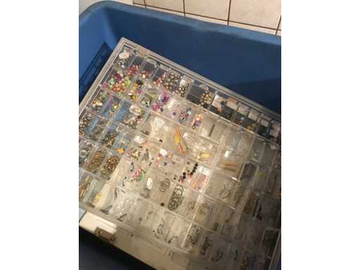 Große Menge an Piercings, Stretchern, Ohrringen; in Aufbewahrungsboxen; mit Vitrine; Piercing-Gerät; Tausende von Stücken; unbenutzt;