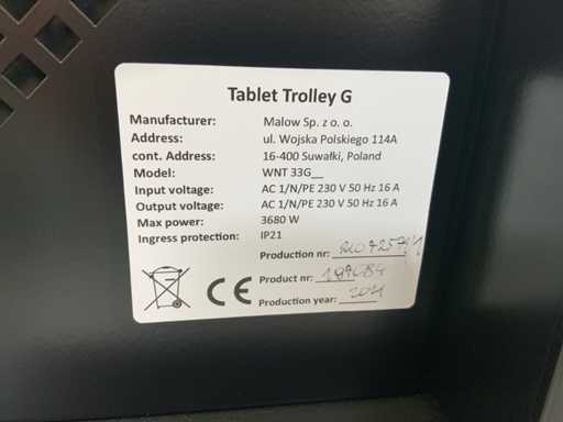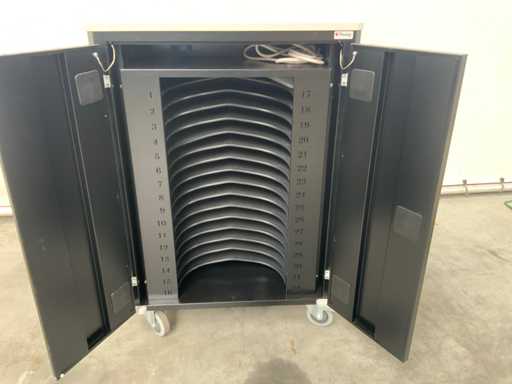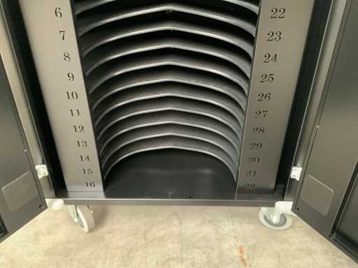 Speicher-/Ladestation für Tablets und Laptops, ausgestattet mit Drehrädern, 230V-Anschluss, 32 Fächern, ist dies ein ungenutztes Produkt