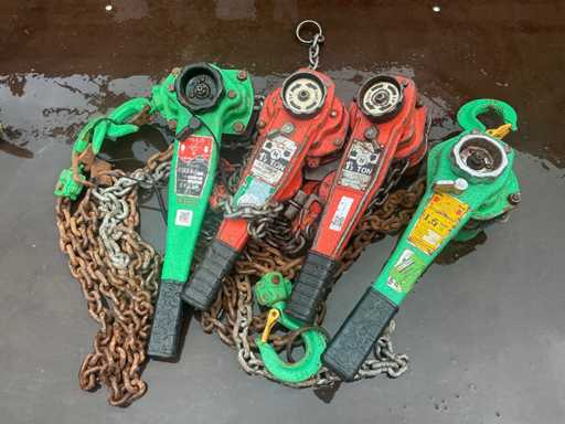 Bestehend aus einem 4x 1,5 Tonnen schweren Ratschenheber, darunter RTO-150 und DeltaGreen 1,5 Tonnen.