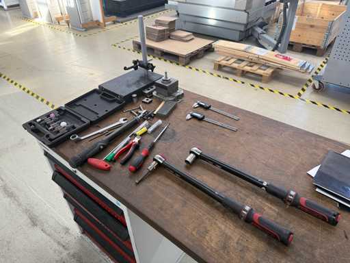 Inhalt bestehend aus Schleifmitteln, einer Granitmessplatte (Plattenabmessungen: 300 x 200 x 50 mm), 2 digitalen Messschiebern