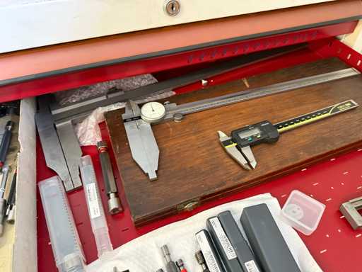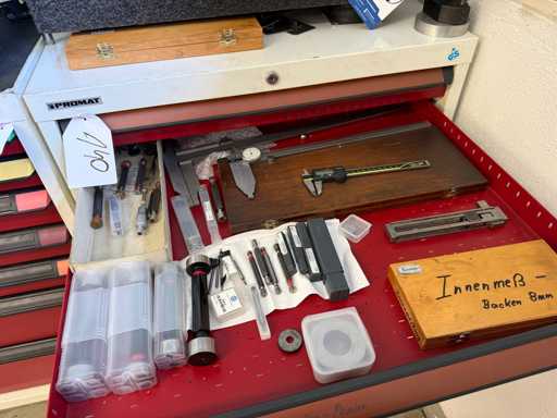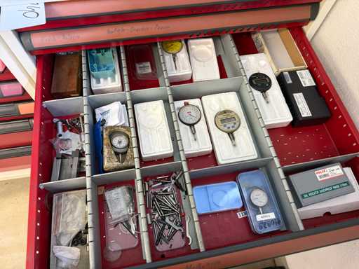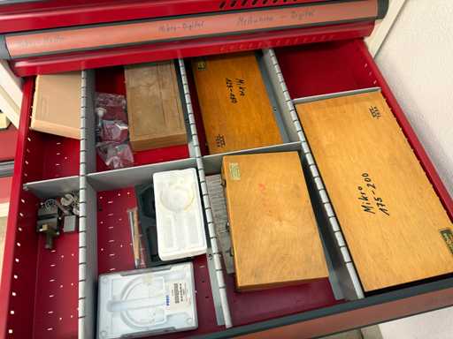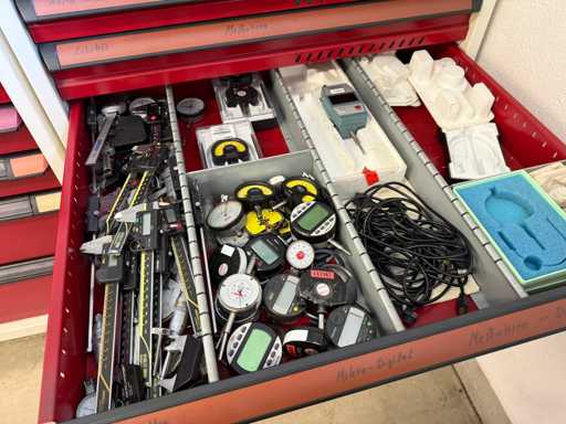 Inhalt bestehend aus diversen Grenzlehrdornen, Messuhren, digitalen Messschiebern, digitalen Messuhren, Mikrometern in verschiedenen Größen