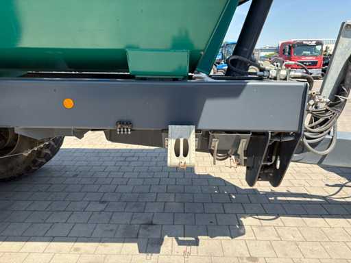 Der Wannenkörper besteht aus Hardox 450 (6mm) und hat glatte Innenwände für eine leichtere Entleerung. Die hydraulische Rückwand besitzt eine automatisch nachstellbare Verriegelung und einen Steinschutz für die Zylinder.
