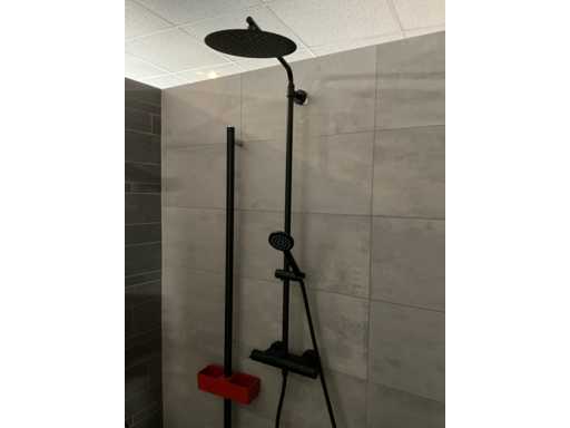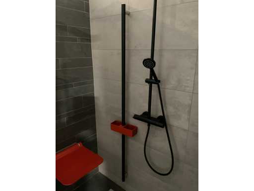 Beinhaltet: Damixa-Duschsystem mit Rutschstange sowie Deckendusche und Handdusche, Duschsitz, Seifenschale auf der Schiebebügel.