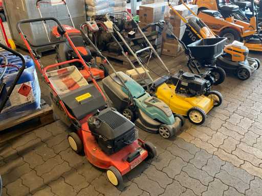 1x Al-Ko Motorrasenmäher (laut Spezifikation defekt), 1x Sabo Motorrasenmäher, 1x Gardena Elektrorasenmäher. Beinhaltet 1x Düngerstreuer