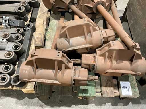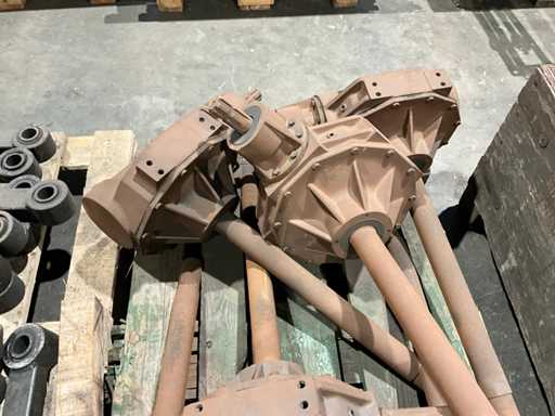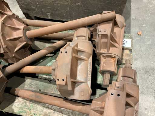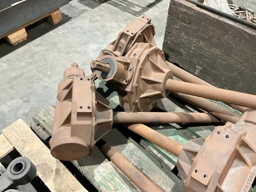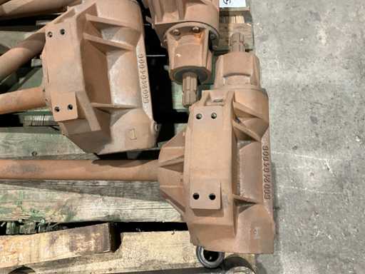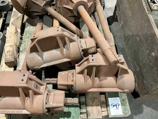 1 Seite mit Stub-PTO, 1 Seite mit langer Welle, Wellenlänge 565 mm, Gesamtmaß 1 rechtwinkliges Getriebe (LXW) 800x500 mm, alles auf einer Palette