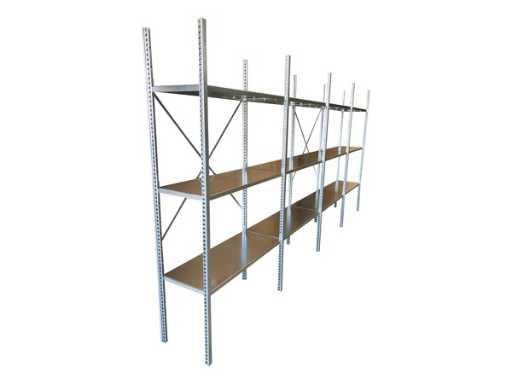 Unbenutzt. Höhe 200cm, Tiefe 50cm, Bestehend aus: 10 Stile 200cm + 24 Stützen 50cm + 12 Regale 98x50cm + 10 Fußkappen Nettogröße zwischen den Ständern: 96,5 cm breit pro Fach. ( 4 Fächer ) Gesamtlänge 404cm lang Unbenutzt und zerlegt