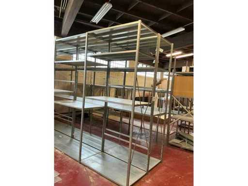 Größe etwa 9,20 Laufmeter, bestehend aus 20 Pfosten mit einer Höhe von etwa 2,50 m und 32 Regalen mit den Maßen ca. 1,15 x 60 m