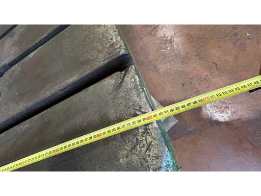Anmerkungen: T-Schlitz-Tisch, geeignet zum Spannen, Inspektion oder Zusammenbau von Werkzeugen. Stabile gusseiserne Struktur in gutem Gesamtzustand.