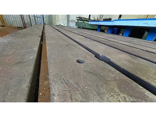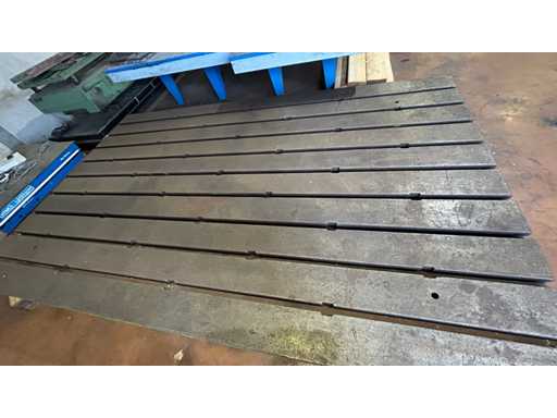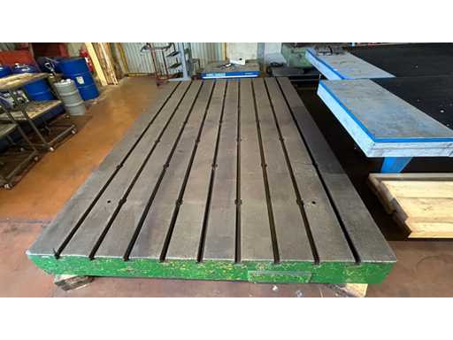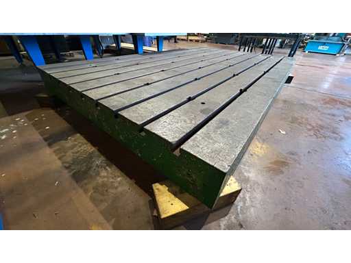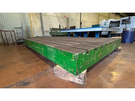 Großer gusseiserner Rillentisch, der für Spannen, Montage oder Steuerung verwendet wird. Sein einteiliges Gusseisendesign sorgt für ausgezeichnete Steifigkeit und Stabilität bei Präzisionsarbeiten.