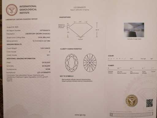 IGI-Berichtsnummer: LG 728565979 Form: oval Gewicht: 3.04CT Farbe: E Helligkeit: VS1, ausgezeichnet Symmetrie: ausgezeichnet Steine: Diamanten 6 Stück in runder Form, insgesamt 0,24 ct Besichtigung nach Vereinbarung