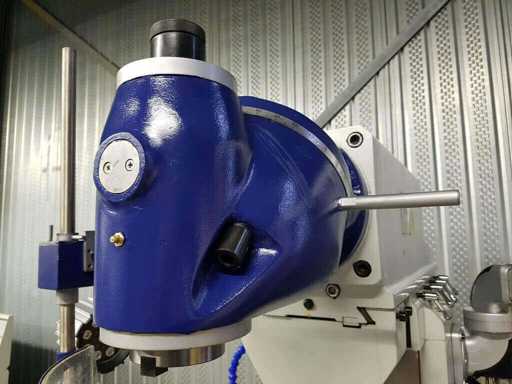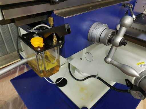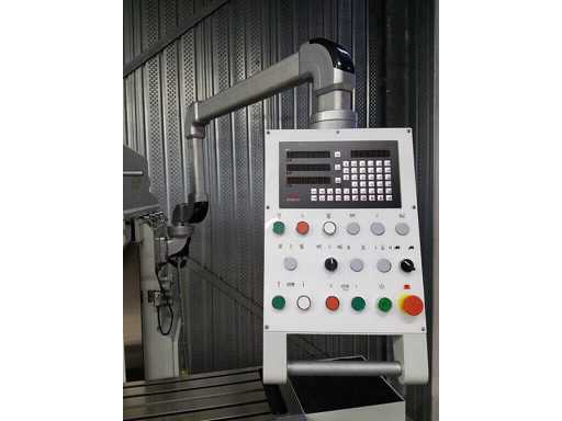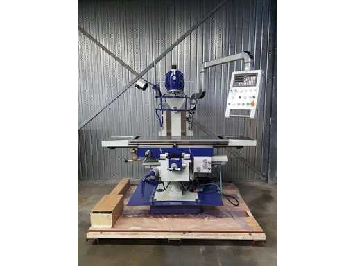 Eilgang-Frästisch 20~360 mm/min, T-Nut 5x14x83 mm, Fräskopf 360º drehbar, 3-Achsen Digitalanzeige SINO, LED-Beleuchtung, Kühlpumpe, ISO40 Fräsaufnahme inkl. 8 Spannzangen, Zentralschmierung, langer Fräsdorn 32 mm, horizontaler Fräsdorn, manuell, Fräsmaschine unbenutzt