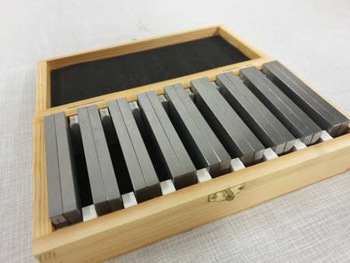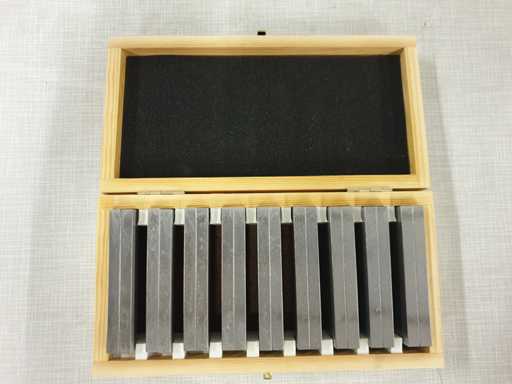 Gesamt 9 Paar, 18-teilig, Genauigkeit ± 0,01 mm, Länge x Breite 100 x 8,5 mm, Höhen 14, 16, 20, 24, 30, 32, 36, 40, 44 mm, Lieferung in Originalverpackung, unbenutzt