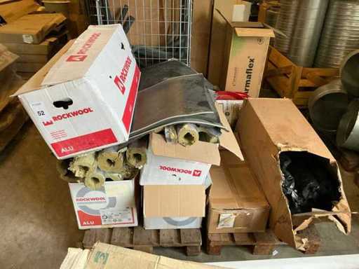 Bestehend aus 10 Paletten, darunter: verschiedene Lüftungskanalreduzerer, Rohrdämmung und verschiedene