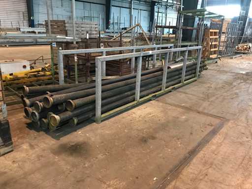 Rack mit etwa 21 Kunststoffröhren; Durchmesser etwa 12 cm