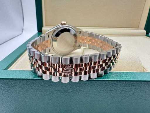 Wichtige Merkmale: Modell: Rolex Datejust 31 Quelle: 278271 Zustand: Nagelneu, ungetragen Material: Edelstahl & 18k Everose-Gold (Rolesor) Zifferblatt: Schokolade mit werkseitig gesetzten Diamant-Stundenmarkierungen Lünette: 18-karat-Everose-Gold-Rillierung Armband: Jubilee (Stahl & Everose-Gold) Uhrwerk: Automatisch, Rolex Kaliber 2236 Garantie: 5 Jahre internationale Rolex-Garantie Set: Komplettset – Rolex-Box, Garantiekarte, Heftchen und Kartenhalter Eine atemberaubende und elegante Rolex Date, nur 31 Jahre in Everose Rolesor, mit einem schokoladenartigen Diamantzifferblatt – die perfekte Mischung aus modernem Luxus und zeitlosem Design.