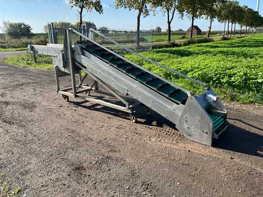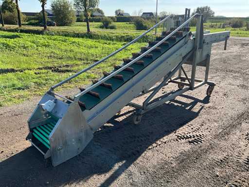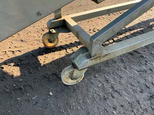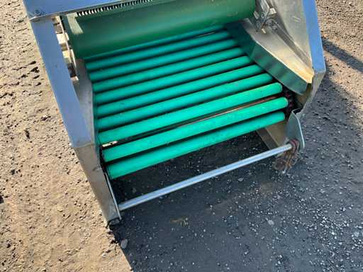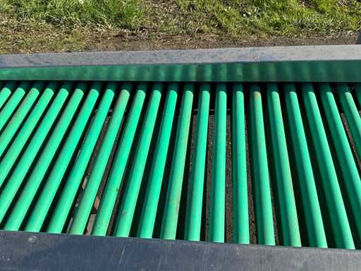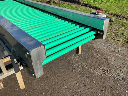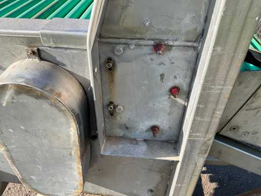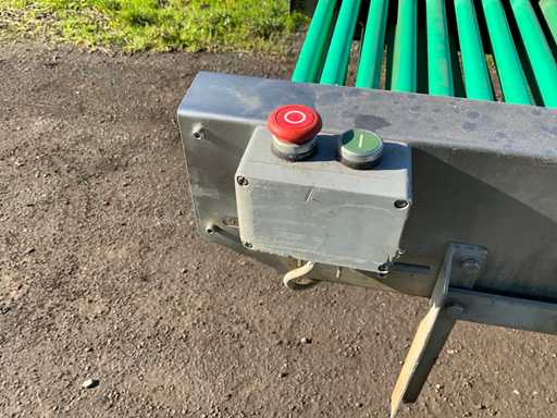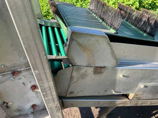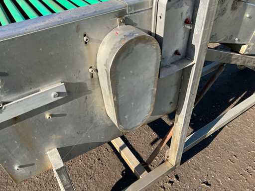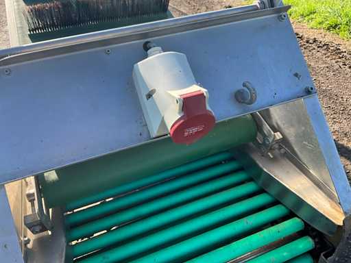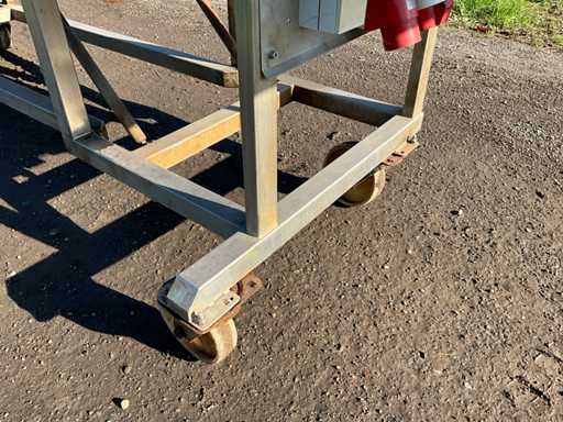 Bandbreite 400mm, Rollen 25mm Durchmesser, Bürstenbahn, fahrbar, winkelverstellbar, 400V 16A 5-poliger Stecker, 2x 400V 16A 5-poliger Steckerausgang, 230V Steckdose, Edelstahl