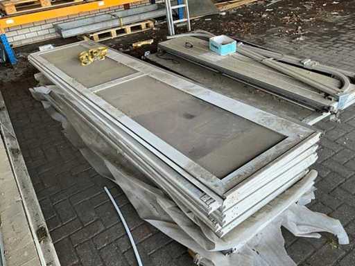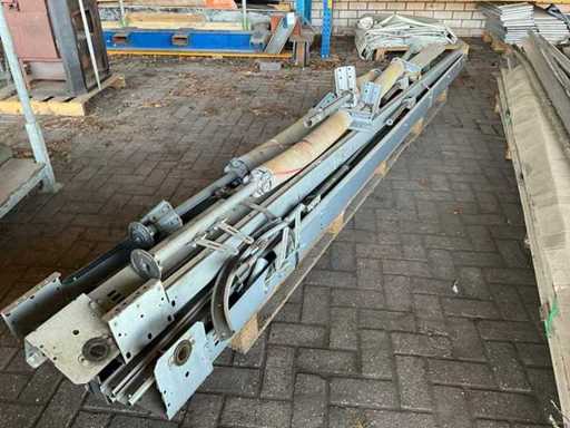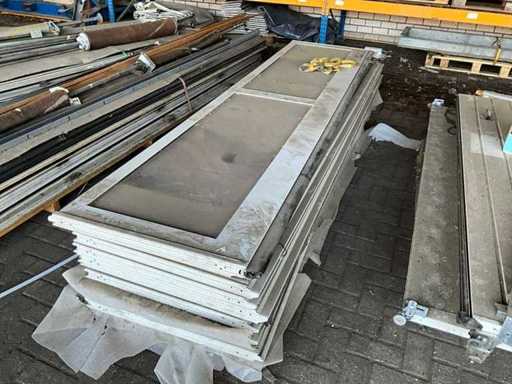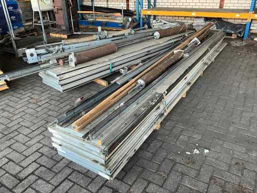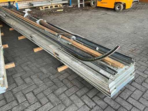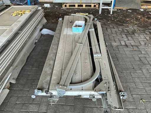 1x Rollentür besteht aus 7 Paneelen von 600x4040 mm, 1x Rollentür mit 7 Paneelen von 600x5050 mm, 2x Rollentür Hormann 3140x3500 mm, 1x Garagentor 2400 mm breit und etwa 2150 mm Höhe mit Schienen und Steuerschränken, Motoren und Zubehör