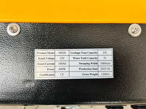 Breite der Bürstenscheibe 1060 mm; Arbeitskapazität 4800 m/h; Mülltonnenkapazität 35L; Sauberwassertank 5L 12V/100Ah; Arbeitszeiten 4-5 Stunden; Leistung 400W; 7530