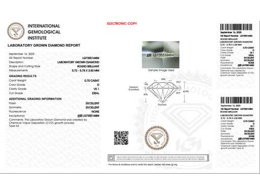 Runder Diamant 0,70ct – D/VS1 – IGI
