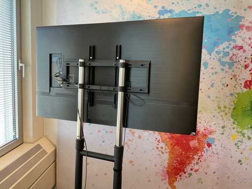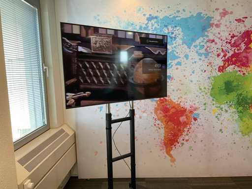 Ausgestattet mit Fernbedienung. Auf mobiler Höhenverstellerbasis. Ebenso wie Fuß