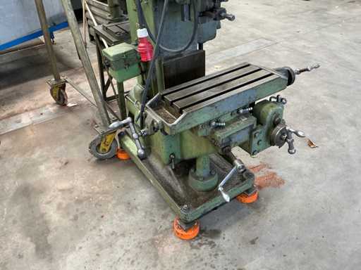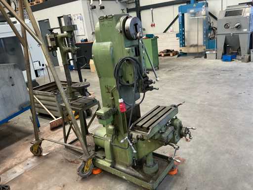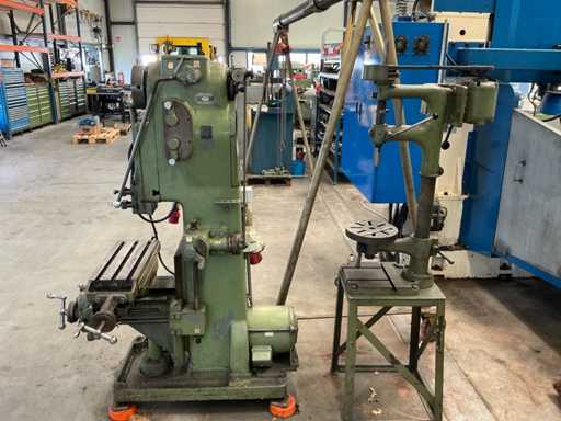 Ausgestattet mit: Schiele Industriewerke KM 15 III ist eine deutsche Säulenbohrmaschine von ca. 1965–1980 mit einem 380 V / 50 Hz Drehstrommotor von ca. 1,1–1,5 kW, einem Drehzahlbereich von ca. 150–3.000 U/min, maximalem Bohrdurchmesser von 15 mm Stahl, Bohrspindel mit Kegel B16 oder MK2, Tischgröße von ca. 300 × 300 mm, Gesamthöhe von ca. 1,7 m, Gewicht von 150–200 kg