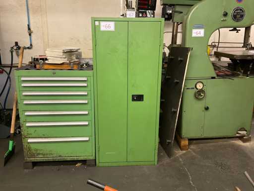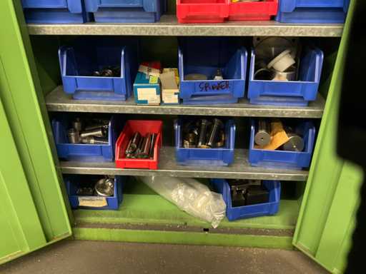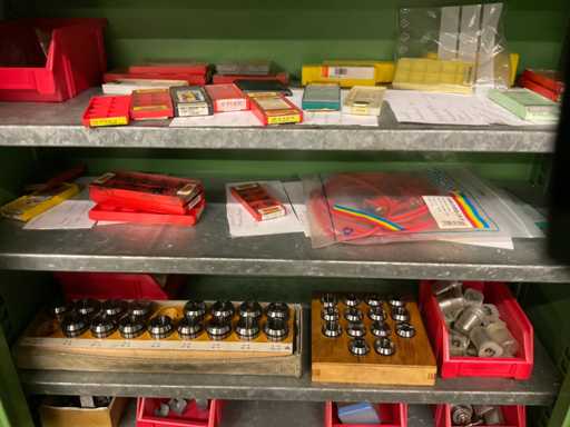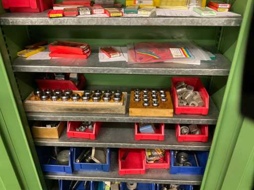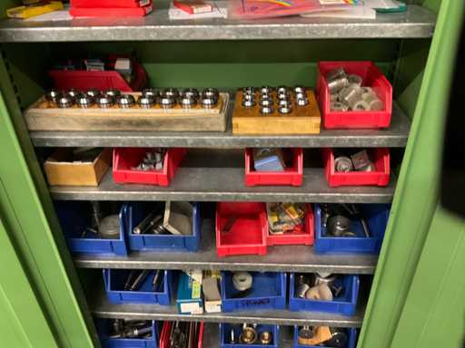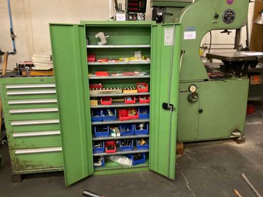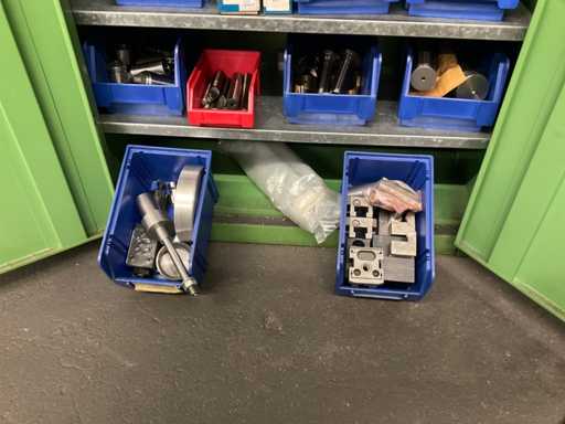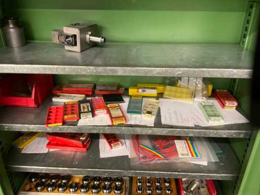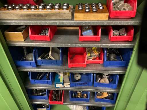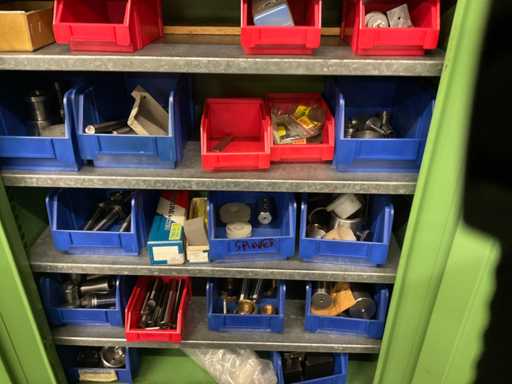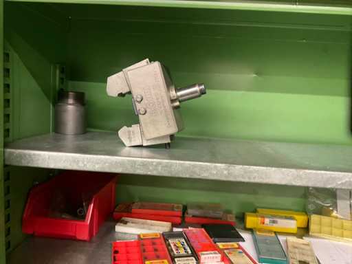 Schrank 2-türig mit Inhalt, bestehend aus: u.a. RÖHM Spanngreifer, div. Wendeschneidplatten, Spannzangen, Innendrehstählen, Spannbacken