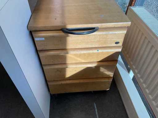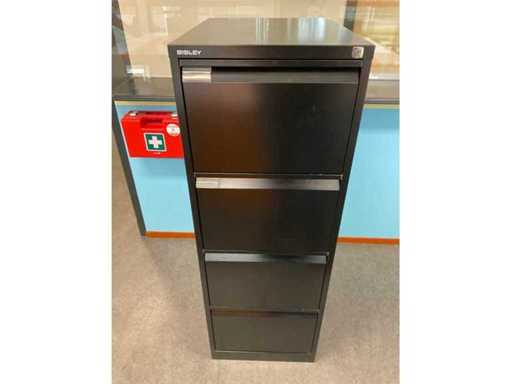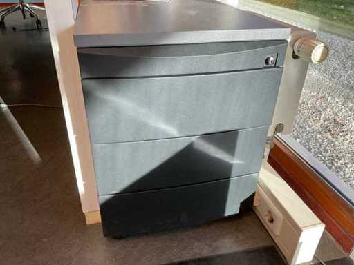 Enthält: (3x) Schubladeneinheit, (3x) mobiler Bürostuhl, schwarzer (5x) Comforto-Konferenzstuhl, schwarzer (1x) Rolltürschrank 1200x460x760mm, (1x) Bisley-Aktenschrank 470x620x1330mm