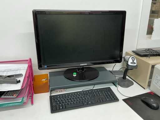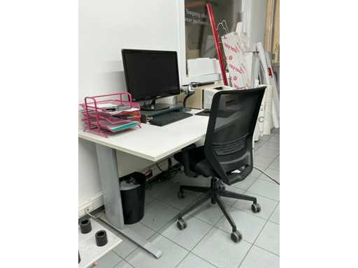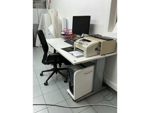 Bestehend aus einem Metallschreibtisch mit Holzoberfläche, Größe etwa 160 x 80 x 73 cm, SAMSUNG-Monitor, 2 Tastaturen HP und Maus, Barcode-Scanner SYMBOL, Drucker HP LASERJET 1118, Schalter HP, Bürostuhl mit Stoffpolsterung, außer Desktop HP