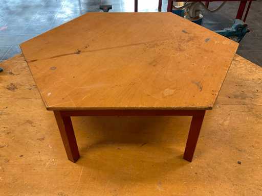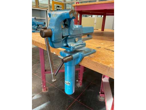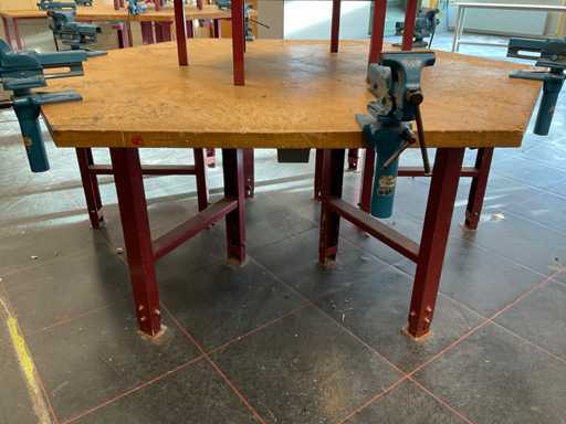 Sechseckige Werkbank mit Heuer-Schraubzwingern