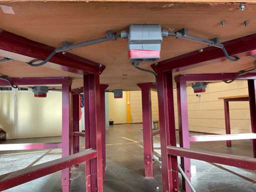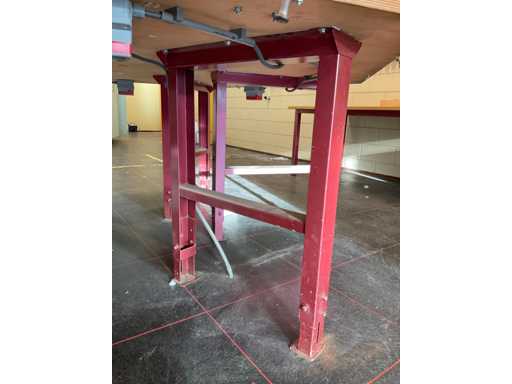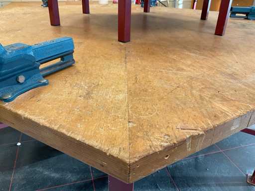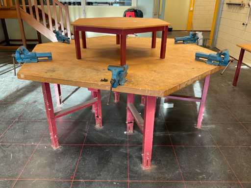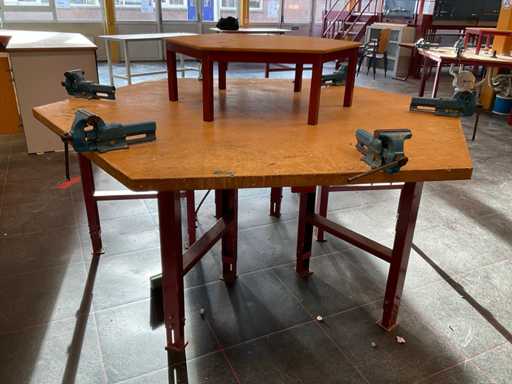 Sechseckige Werkbank mit Heuer-Schraubzwingern