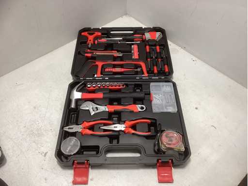 Das robust geformte Blasformgehäuse enthält 8 Allbusschlüssel, einen digitalen Spannungsmesser, PVC-Isolierband und ein scharfes Universalmesser mit fünf Ersatzklingen. Zwei Schraubendreher (3 × 75 mm) und ein bequemer Bohrerhalter zusammen mit den 10 meistgenutzten Bohrern lösen jede Schraubenzieheraufgabe, während 9 metrische Steckübungen in Kombination mit der Gelenkstange zusätzliche Rotationskraft auf Schrauben und Muttern ausüben. Eine 6" Kombinationszange, ein 8-Unzen-Krallenhammer und ein 3-m-Maßband vervollständigen das Set, sodass Sie sofort bereit für Reparaturen im Haus, in der Garage, im Wohnmobil oder im Boot sind. Alle Metallteile bestehen aus gehärtetem CrV-Stahl für langanhaltende Verschleißfestigkeit, während die ergonomischen Griffe in PP + TPR stabil und bequem zu halten sind. Kompakt, leicht und klar: das vielseitige Werkzeugset für jeden Heimwerker.