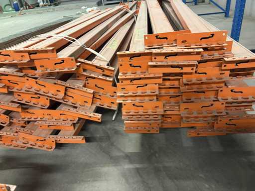 Lagerregale zum Verkauf: · 38 blaue Leitern 6 m hoch und 110 cm tief · 120 orangefarbene Schwellen von 2,7 m · 50 Installationsraster
