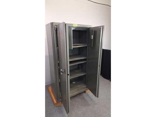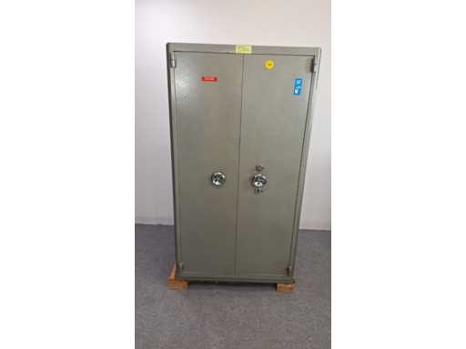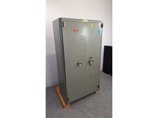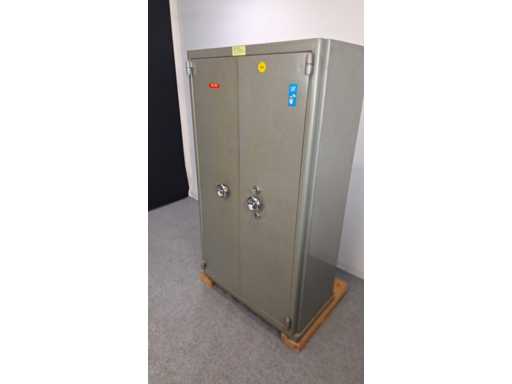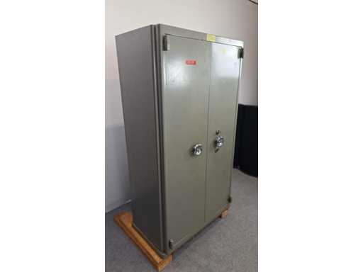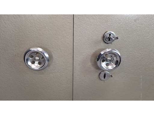 Safe, komplett mit Schlüssel, Abnutzungsspuren vorhanden, aber funktionsfähig, im Inneren Safe beschädigt und Schlüssel fehlt, der Käufer ist für das Beladen von der Laderampe verantwortlich