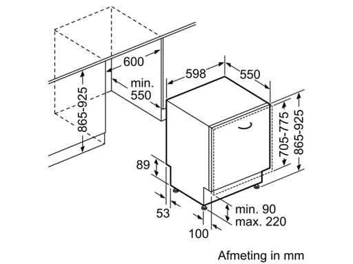 Minimale Nischenbreite; 600 mm