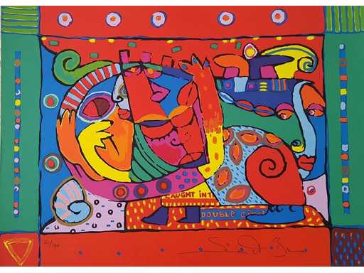 *Das französische Duo Simon und Bruno: führt ein unregelmäßiges und interessantes Leben als professionelle Künstler. Nach einer Zeit des Hin- und Herreisens mit Marionetten zwischen Paris und Straßburg wurde die Entwicklung der Kunst zu ihrem Hauptziel. Der Ausgangspunkt ist Ausdruckskraft. Außerhalb Europas wurden auch die Vereinigten Staaten und Japan unter anderem zu Arbeitsgebieten. Logos wurden für Hotels entwickelt, aber auch für Skulpturen und Schmuck für wohltätige Zwecke. Ungezügelter Einsatz von Farben, Bildern oder geometrischen Situationen wird unter ihrem Motto "einfach, aber effektiv" festgehalten. Das bodenständige, aber emotional verbundene Duo vermittelt eindeutig eine Botschaft. Wenn das Publikum eine synthetische Symbolik in seinem Werk entdeckt, beziehen sich diese Eigenschaften auf den Menschen mit seinem sexuellen Verlangen, seiner materialistischen Haltung und all den grotesken Beziehungen in jeder menschlichen Existenz.