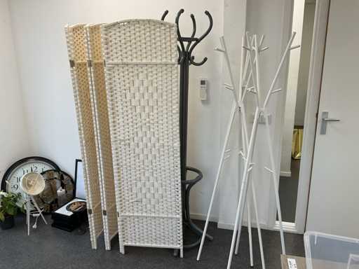 2x Uhr, Zimmerpflanze, verschiedene Bilderrahmen, 4x Garderobe, Seitenlampe usw