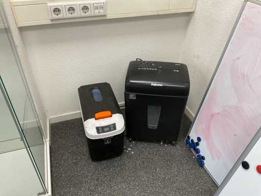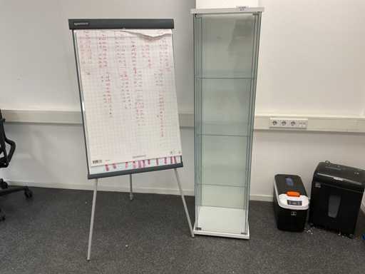 Flipchart, Schredder, Vitrineschrank und verschiedene Whiteboards