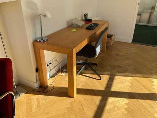 Bestehend aus 1 Tisch (180x60x76 cm) und 6 Stühlen einschließlich Teppich, Lampen und Bücherregal (90x33x201 cm)