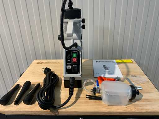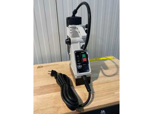 Magnetbohrmaschine, im Fall, sehr geeignet für schnelles und präzises Bohren von Löchern mit einem Durchmesser von bis zu 35 mm. Automatisches Kühlsystem, abgeschirmte Luftansaugung schützt den Motor vor Flüssigkeit und Schmutz, ölgefülltes Getriebe. Spannung: 230V Magnetische Kraft: 16000N Leistung: 1600W Drehzahl: 810 U/min Bohrkerndurchmesser: 35 mm Maximale Schnitttiefe: 35 mm Hub: 210 mm Drillgewicht: 14 kg Inklusive Gehäuse, 3x Schraubgriffe, Spannriemen, Reservoir für kühles Öl Handbuch verfügbar, ungenutzt Paketgewicht 14 kg