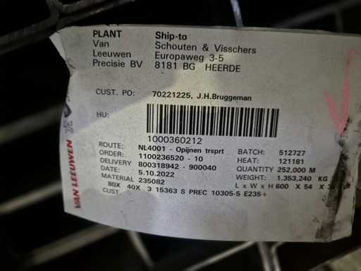 Stahlkastenprofile E235 + CR1 S2, Größe 80x40x3mm Länge 6000mm, Lieferant von Leeuwen Precision BV, Anzahl der Bündel: 2, Gewicht pro Bündel ca. 1540kg gesamt: 2890kg