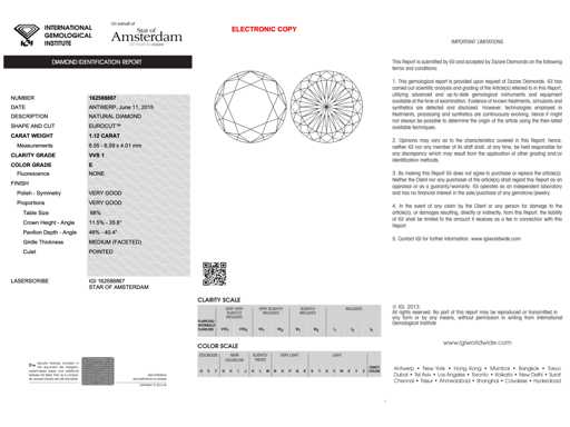 Diamant: Natürlich; Menge: 1 Stück; Kürzung: Euro-Kürzung; Gewicht (Karat): 1,12 Karat; Farbe: E; Reinheit: VVS1; Zertifikat: IGI; Zertifikatsnummer: 162588867; Marke: 257 Facetten 'Stern von Amsterdam'; Zustand: Neu; Verpackung: Gem Box; Erklärung: Die Qualität wurde aus dem Bericht übernommen, der zum Artikel gehört. Die Bewertung ist eine Bewertung eines zertifizierten Diamanthändlers, basierend auf Verbraucherpreisen; Verbraucherpreis: 35.000 €