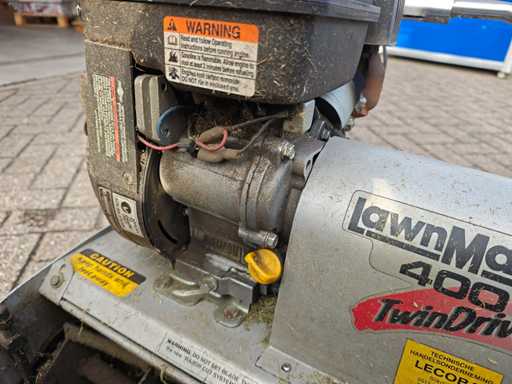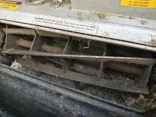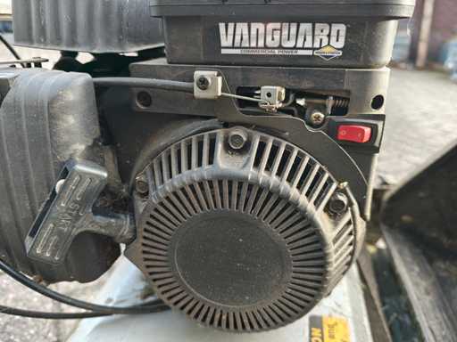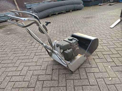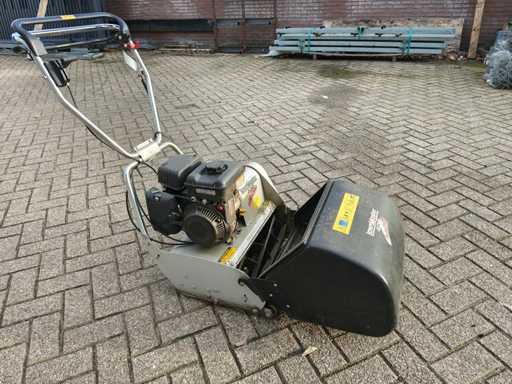 Spindelmäher mit Fangkorb, Maschine startet und fährt